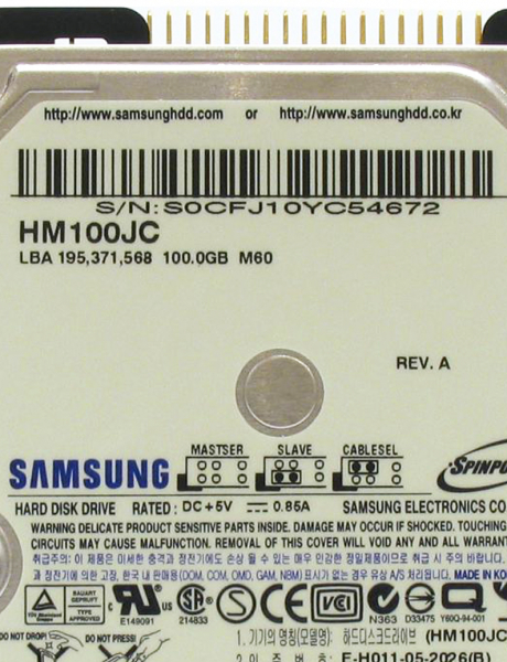 Жесткий диск Samsung HM100JC 100Gb 5400 IDE 2,5" HDD
