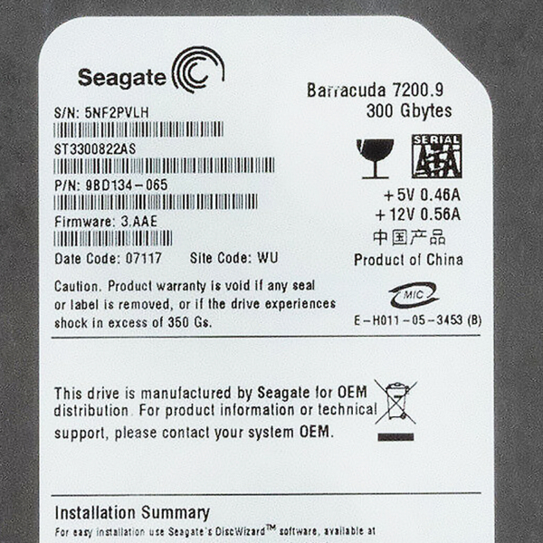 Жесткий диск Seagate 9BD134 300Gb 7200 SATAII 3.5" HDD