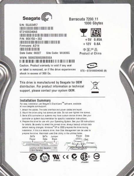 Партномер ST31000340AS