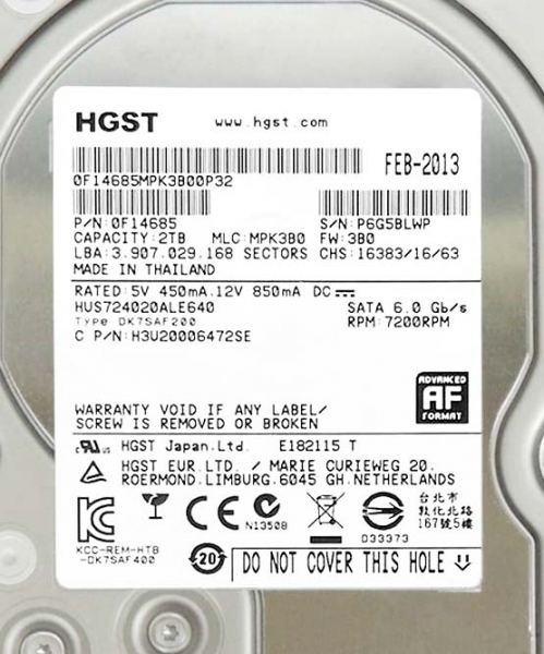 Жесткий диск Hitachi HUS724020ALE640 2Tb SATAIII 3,5" HDD