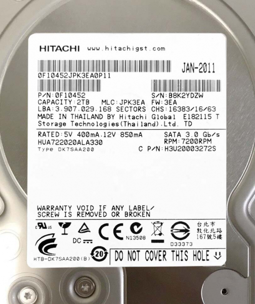 Жесткий диск Hitachi HUA722020ALA330 2Tb SATAII 3,5" HDD