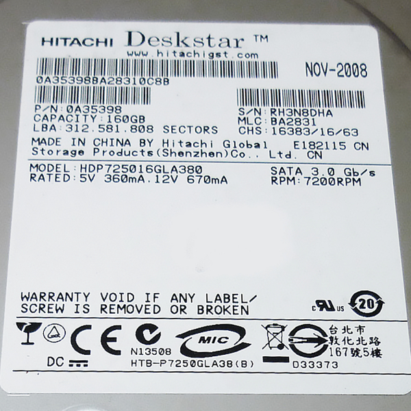 Жесткий диск Hitachi 0A35398 160Gb 7200 SATAII 3.5" HDD