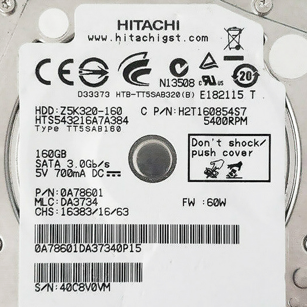 Жесткий диск Hitachi HTS543216A7A384 160Gb 5400 SATAII 2,5" HDD