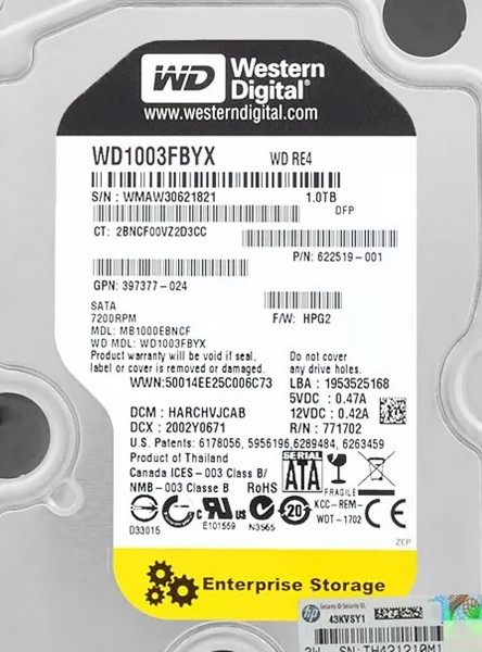 Жесткий диск HP MB1000EBNCF 1Tb 7200 SATAII 3.5" HDD