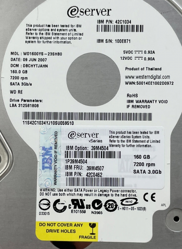 Жесткий диск IBM 42C1034 160Gb 7200 SATAII 3.5" HDD