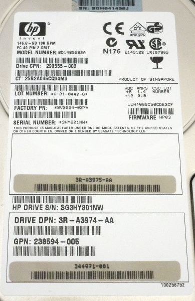 Жесткий диск HP 293555-003 146,8Gb Fibre Channel 3,5" HDD