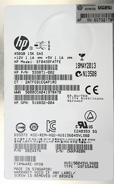 Жесткий диск HP 533871-002 450Gb SAS 3,5" HDD