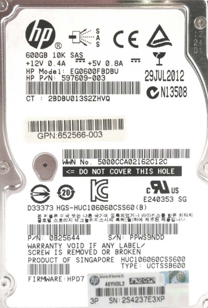 Жесткий диск HP 0B25644 600Gb SAS 2,5" HDD