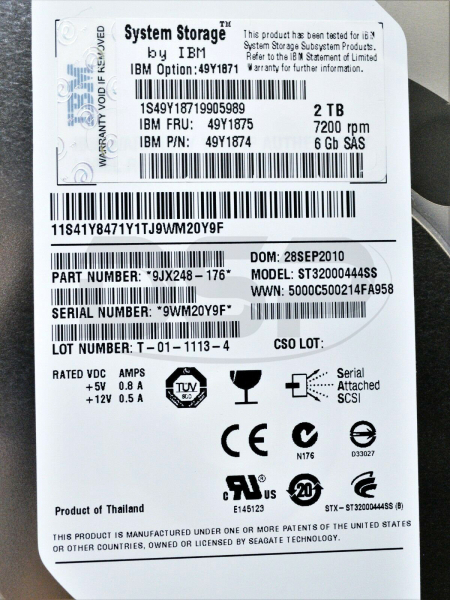 Жесткий диск IBM 49Y1875 2Tb SAS 3,5" HDD