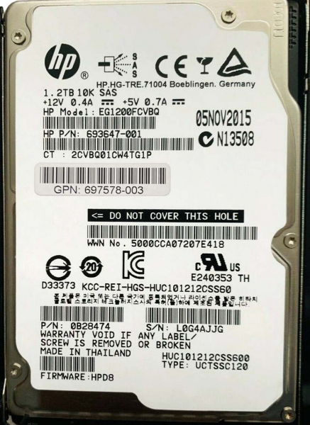Жесткий диск HP EG1200FCVBQ 1,2Tb 10000 SAS 2,5" HDD