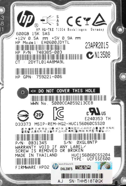 Жесткий диск HP 0B31345 600Gb 15000 SAS 2,5" HDD