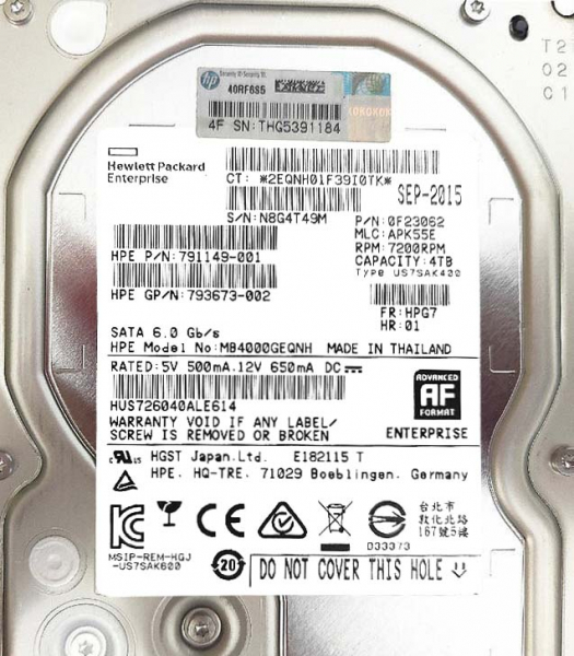 Жесткий диск HP 793665-B21 4Tb 7200 SATAIII 3.5" HDD