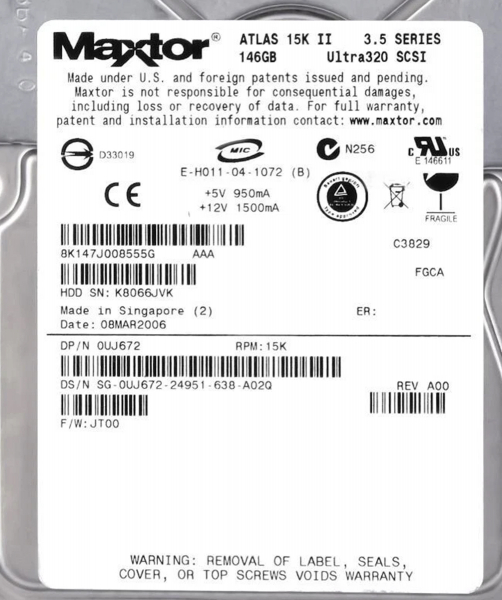 Жесткий диск Dell UJ672 146Gb U320SCSI 3.5" HDD