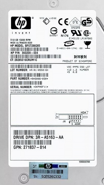 Жесткий диск HP BF07288285 72,8Gb U320SCSI 3.5" HDD
