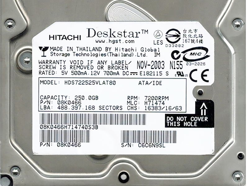 Жесткий диск Hitachi 08K0466 250Gb 7200 IDE 3.5" HDD