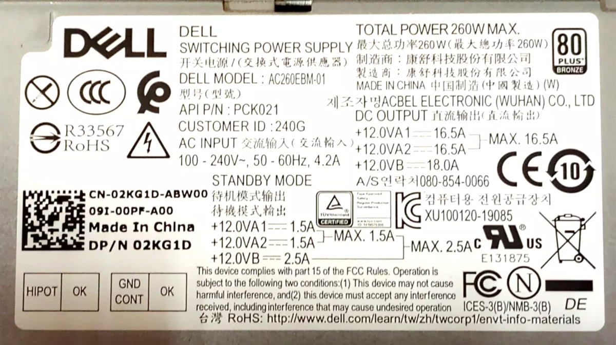Блок питания Dell PCL008 240W