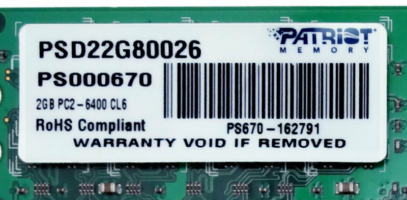 Оперативная память Patriot PSD22G80026 DDRII 2GB