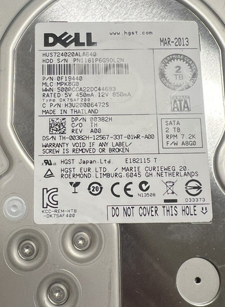 Жесткий диск Dell 00382H 2Tb 7200 SATAIII 3.5" HDD