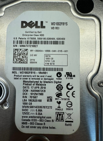 Жесткий диск Dell 050XV4 1Tb SATAII 3,5" HDD