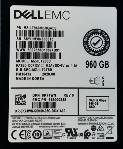Жесткий диск Dell 0K74WN 960Gb SAS 2,5" SSD