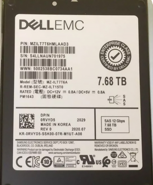 Жесткий диск Dell 0RVYD5 7.68TB SAS 2,5" SSD