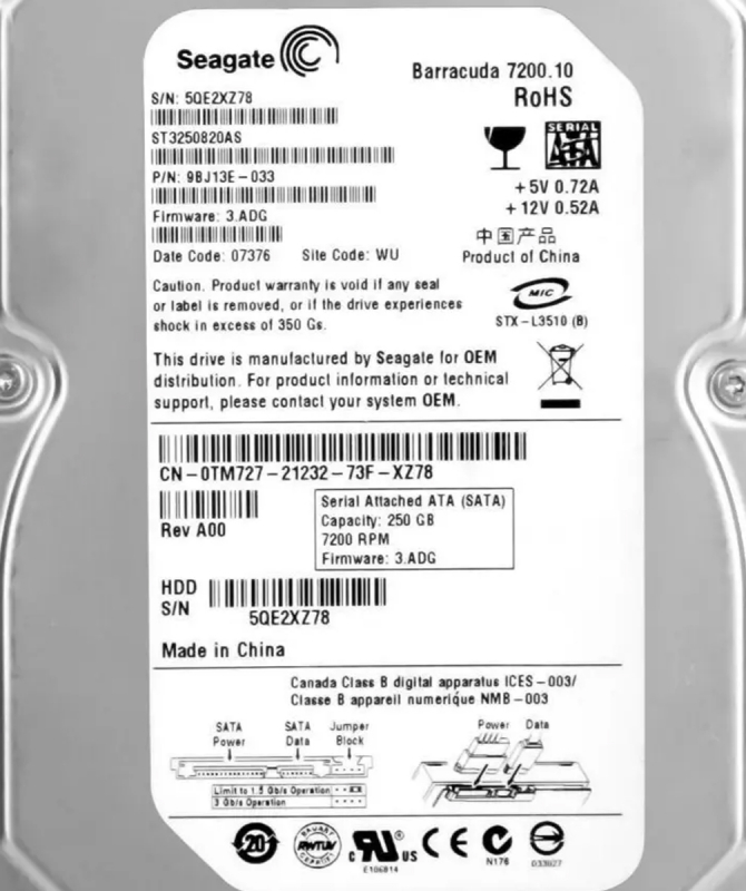 Жесткий диск Dell 0TM727 250Gb SATAII 3,5" HDD