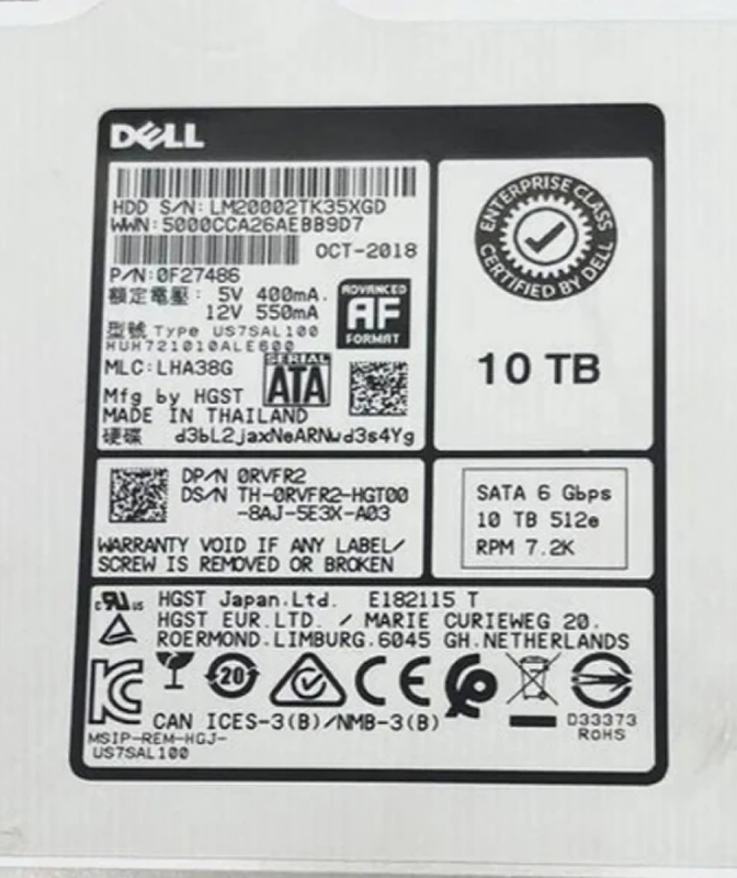 Жесткий диск Dell 400-ANXJ 10Tb SATAIII 3,5" HDD