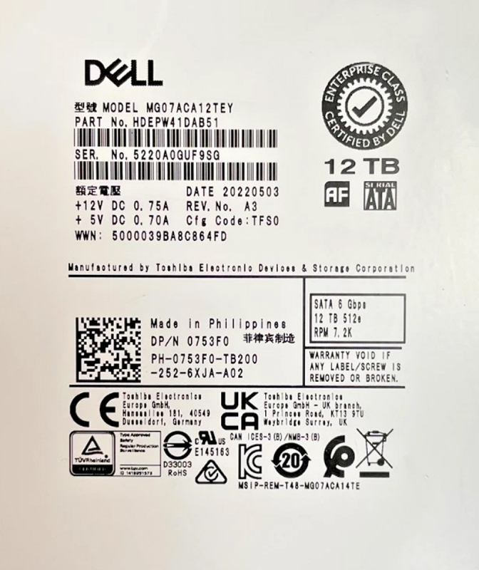 Жесткий диск Dell 753F0 12Tb 7200 SATAIII 3.5" HDD