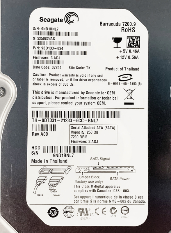 Жесткий диск Dell 9BD133-034 250Gb SATAII 3,5" HDD