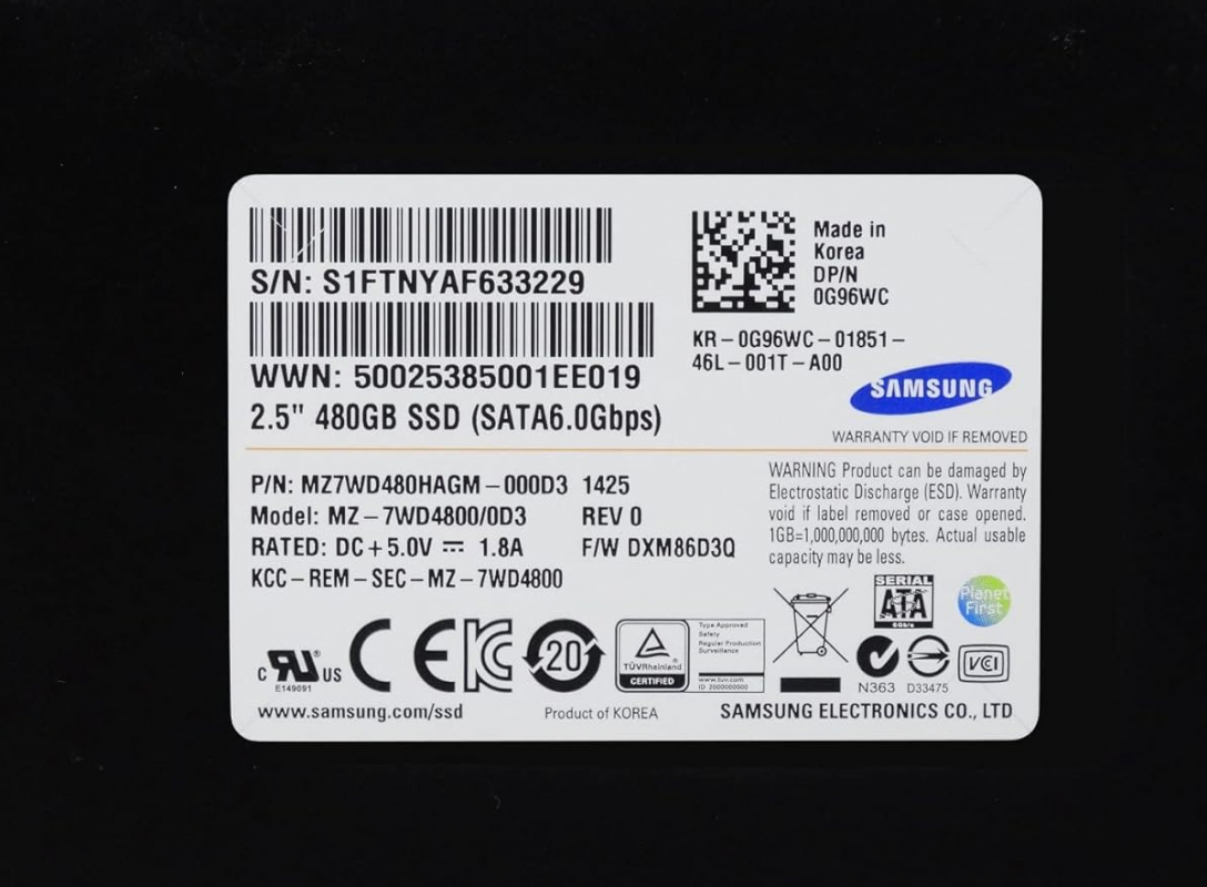 Жесткий диск Dell G96WC 480Gb SATAIII 2,5" SSD