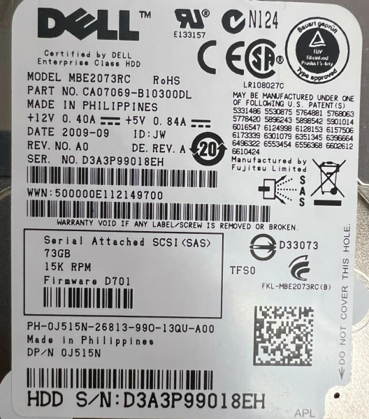 Жесткий диск Dell J515N 73Gb SAS 2,5" HDD