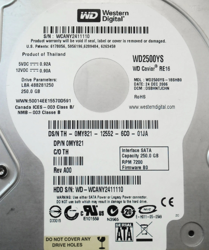 Жесткий диск Dell MY821 250Gb SATAII 3,5" HDD
