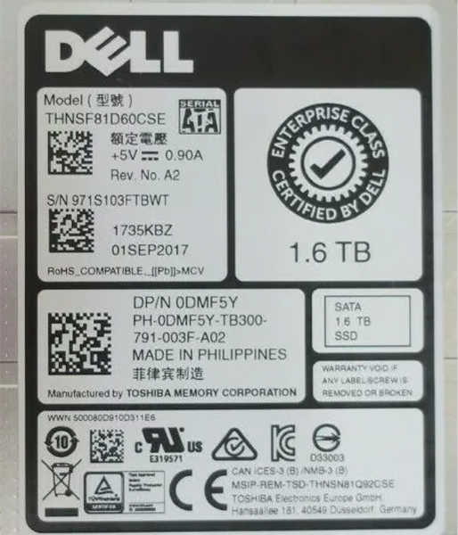 Жесткий диск Dell THNSF81D60CSE 1.6TB SATAIII 2,5" SSD