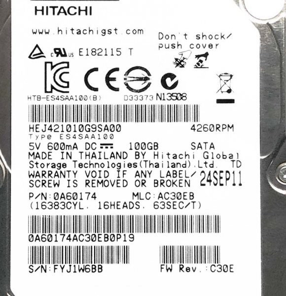 Жесткий Диск Hitachi HEJ421010G9SA00 100Gb SATA 2,5" HDD