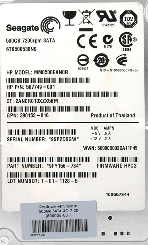 Жесткий диск HP 508269-001 500Gb 7200 SATAII 2,5" HDD