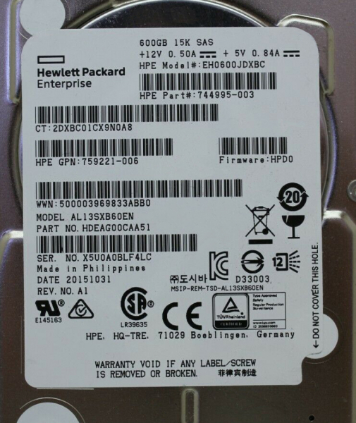 Жесткий диск HP HDEAG00CAA51 600Gb SAS 2,5" HDD
