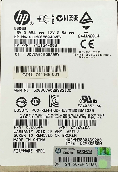 Жесткий диск HP MO0800JDVEV 800Gb SAS 2.5" SSD