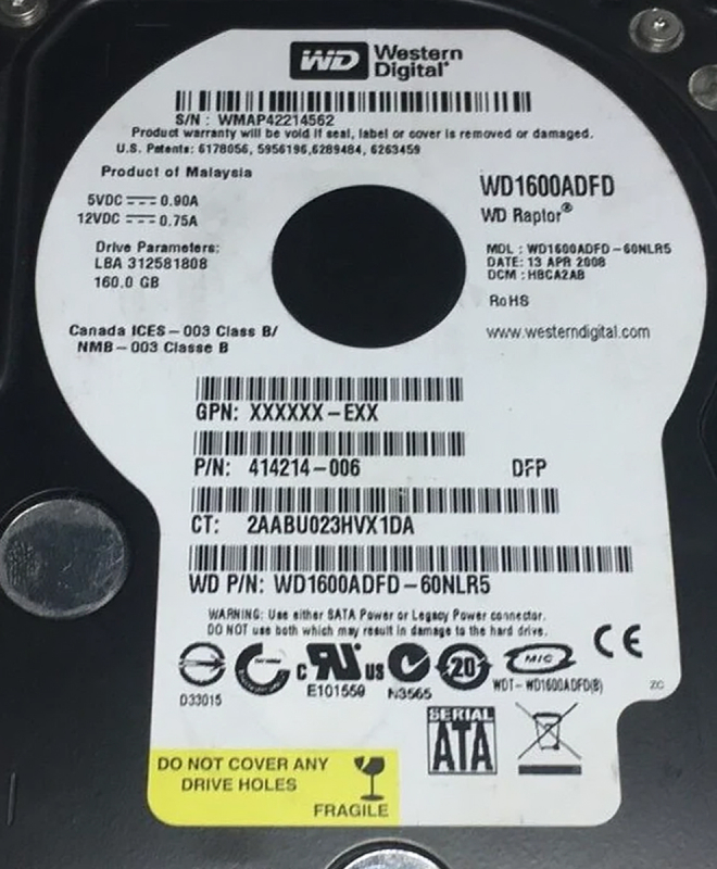 Партномер WD1600ADFD-60NLR5