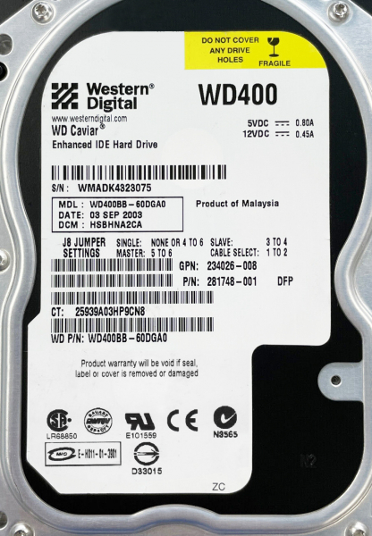 Жесткий диск Western Digital WD400BB-60DGA0 40Gb IDE 3,5" HDD